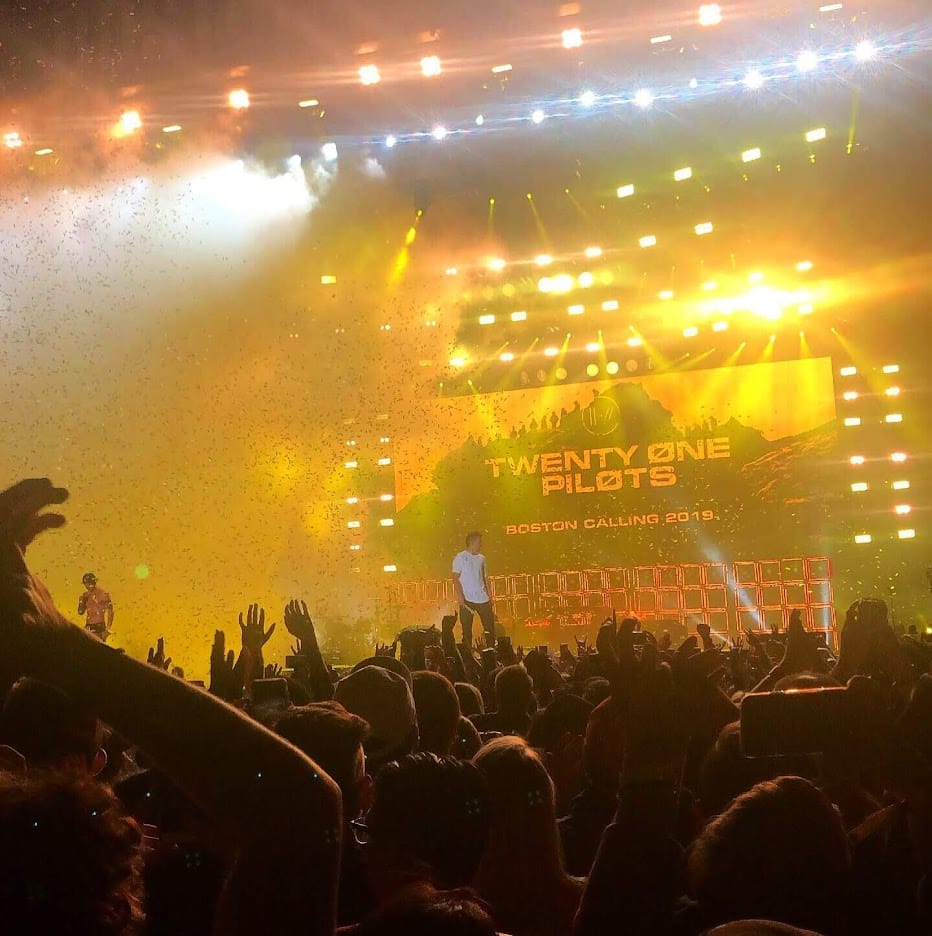 Throughout the day, festivalgoers sprawled out across the grass, sharing food from local Boston vendors and dancing along to the indie-rock beats. Boston Calling is unlike other festivals – rather than moshing and crowd-surfing, the crowd is very laid back. That is, until Twenty One Pilots took the stage. Just as the sky turned dark, fans started to gather around the stage, dressed with caution tape covering their arms in support of the band’s recent LP Trench.