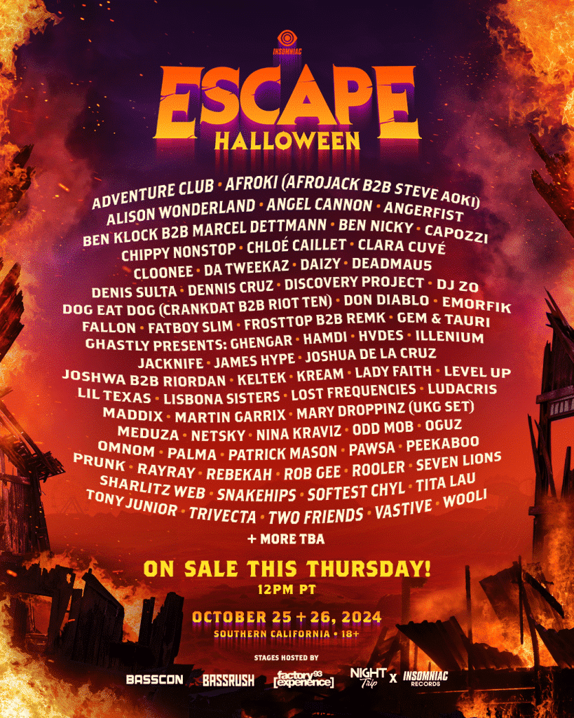 The Insomniac-run Escape California is returning to San Bernardino this October for the world’s largest halloween music festival with a stacked lineup of EDM artists.