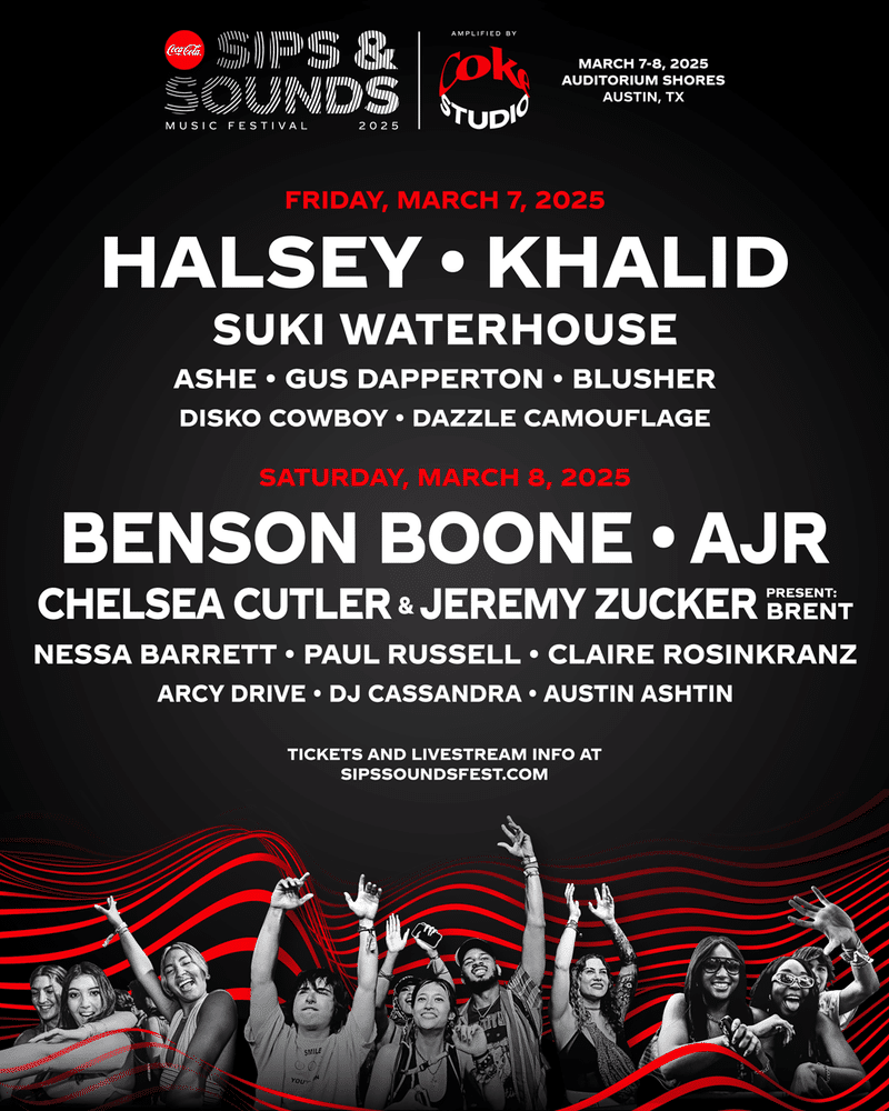 Coca-Cola’s Sips & Sounds Music Festival is heading to Austin, Texas this March, featuring headlining performances from pop stars Halsey, Khalid, Benson Boone, and AJR.