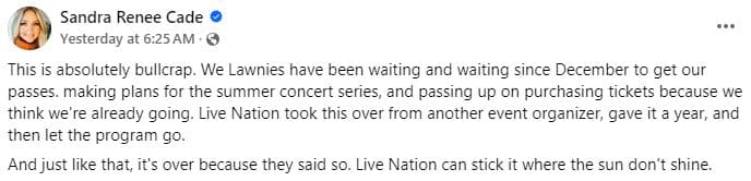 “Previous Lawnies will be the first to hear about these new offerings,” Live Nation shared in a social media post that has now turned-off commenting. “We are so grateful to our Lawnie community, and we can’t wait to share more with you soon. We look forward to seeing you at an upcoming show this summer.”