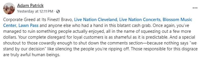 Concertgoers were frustrated with the news, as some tickets have already gone on-sale for shows this summer. Others called the news a “cash grab.”