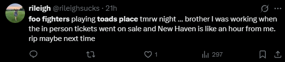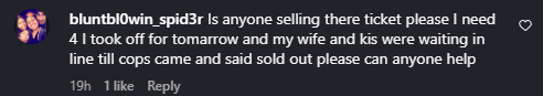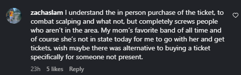Since tickets were only accessible in-person outside of the box office — and the inability to transfer tickets — many fans complained that they felt cheated or locked out of the gig.