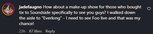 Also, some pointed out that they missed out on the Foo Fighters’ headlining slot at Bridgeport’s Sound on Sound festival last year when the band cancelled last-minute.