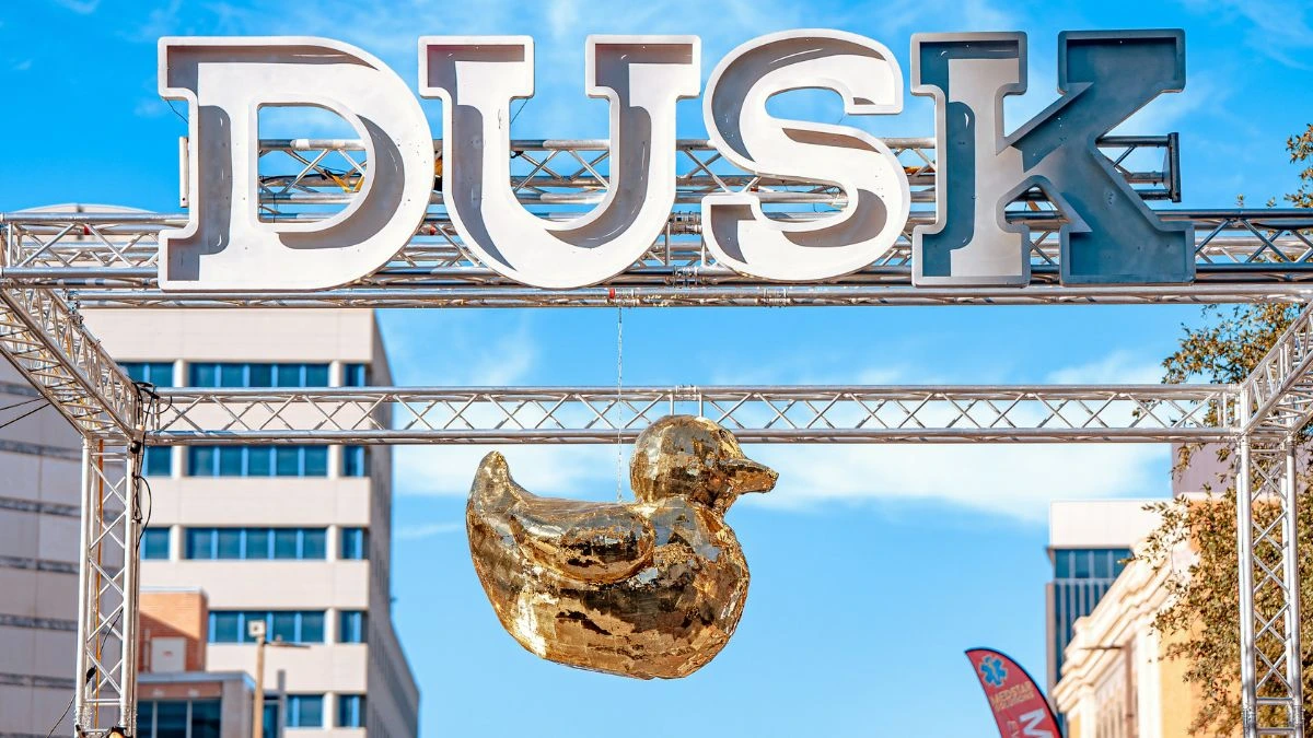 Beyond music, DUSK is recognized for its playful aesthetic, from its giant mirrorball duck to inflatable tube men dotting the grounds. Attendees will also find Tucson FEASTS, a showcase of local chefs and food trucks, a curated Vendor Village of small businesses, and large-scale art installations created by the Tucson arts community. Interactive activations include classic arcade games presented by Cobra Arcade Bar and backyard-style games throughout the venue.