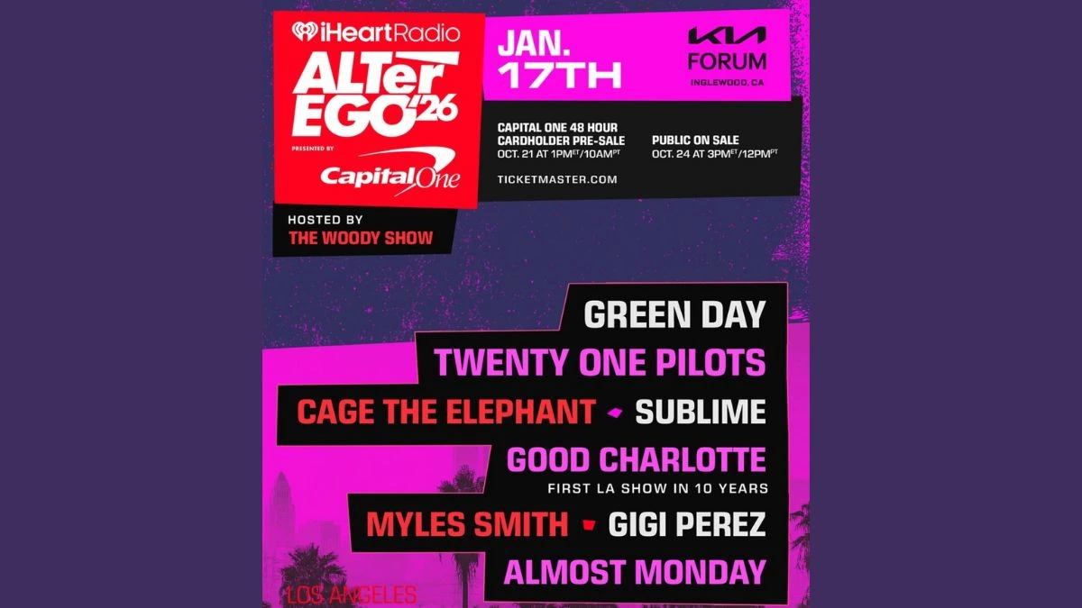 Green Day, Twenty One Pilots, Cage the Elephant and Sublime are set to headline the 2026 iHeartRadio ALTer EGO festival.