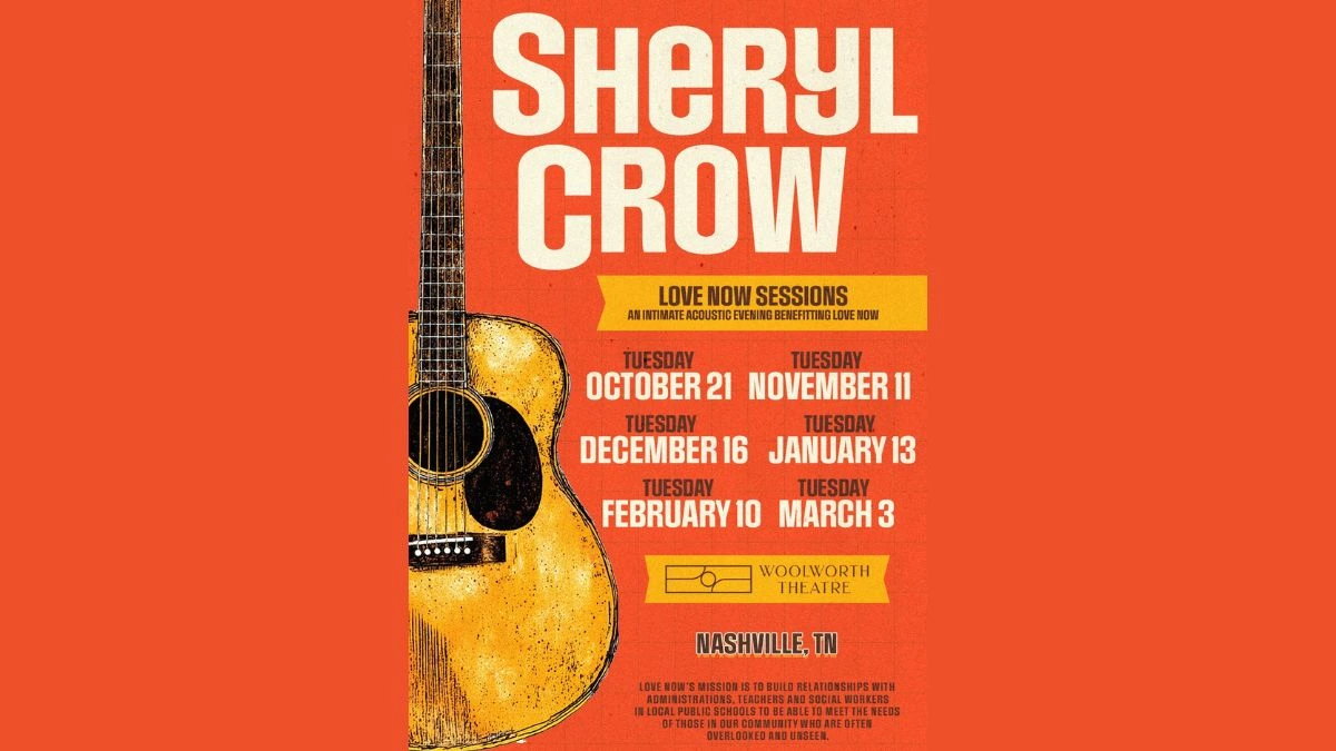 Sheryl Crow will perform a limited run of acoustic shows at the Woolworth Theatre in Nashville as part of her newly announced “Love Now Sessions.” The series will include six performances.